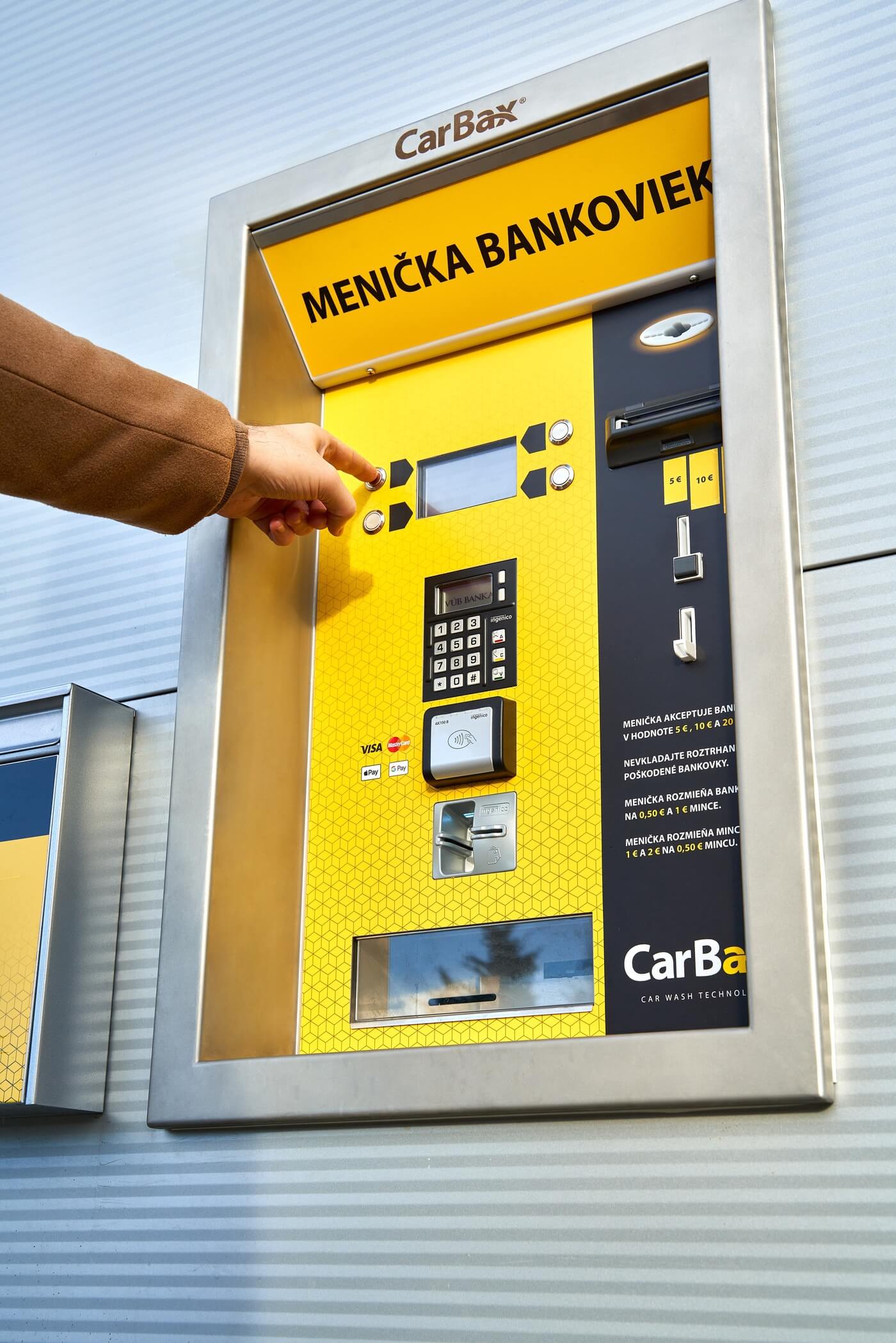 Purchasing CarBaxCard loyalty card via the CarBaxChange banknote changer.